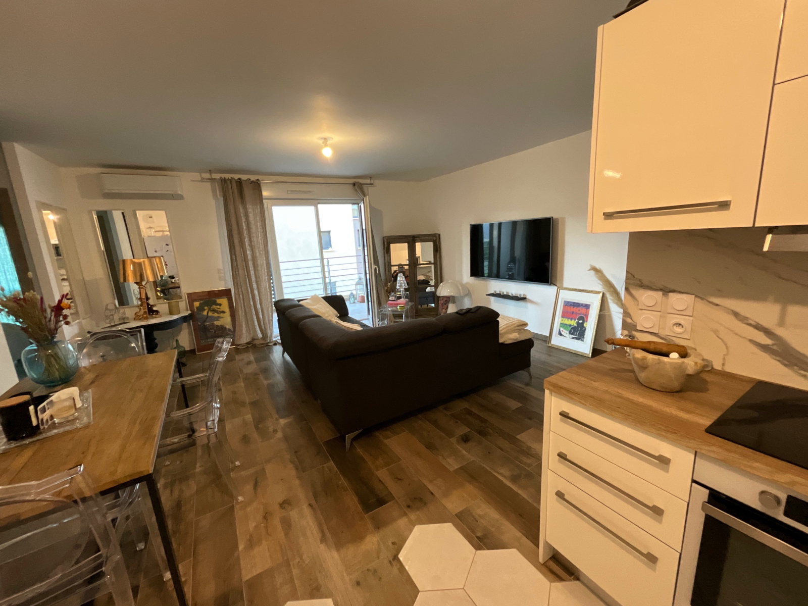 Le bien bénéficie d'une place de parking numérotée. Climatisation réversible dans le séjour et les 2 chambres.