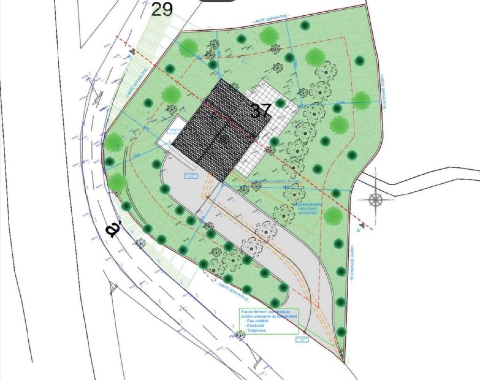 A VENDRE sur la commune de CERVIONI un terrain de 1290m² constructible sur sa totalité. Terrain avec Permis de Construire accordé et purgé de tous recours. CU positif. Terrain d'accès facile, exposé Sud, pentu avec deux parties plates en contre bas. Des travaux de terrassement et d'élagage ont été effectués (voir sur photos). Il dispose d'une petite vue mer et a été défriché dans sa quasi totalité. Raccord aux réseaux aux abords du terrain.(eau, EDF ,telecom). Le terrain se situe à 5 minutes des plages de prunete et 5 minutes du centre du village (commerces, école, collège). Les raccordements étant à la charge de l'acquéreur; Les travaux peuvent être entrepris immédiatement après acquisition. Le permis est à votre disposition (plans du PC, études et démarches effectuées). Toutefois, un dépôt de permis modificatif est bien évidemment possible. Environnement calme et résidentiel. Aucun vis à vis.