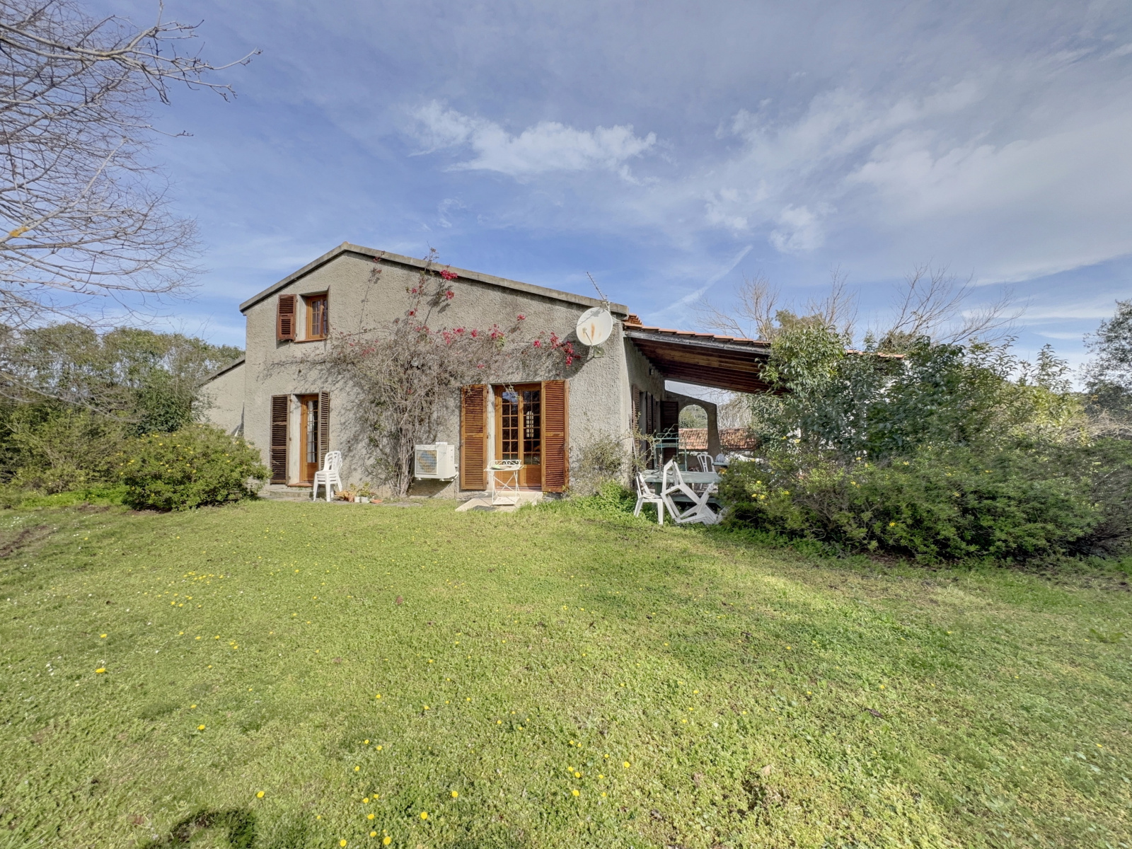 A vendre sur CANALE DI VERDE (plaine), sur une parcelle de terre de 5.080m², une MAISON de type T8 comprenant au rez-de-chaussée une entrée, une cuisine, un séjour, une buanderie, un dégagement, 3 chambres, un bureau, une salle de douche avec WC, un WC avec lave-mains et une terrasse couverte (30 m²) ; un 1er étage comprenant une mezzanine et 2 chambres ; et un sous-sol comprenant 2 caves, un garage fermé (30 m²) + une petite bâtisse indépendante, anciennement à usage de chapelle (9 m²). Terrain plat et ensoleillé, vue dégagée. Maison climatisée, d'une superficie habitable de 196 m², située au calme, à 2.5km de la RT 10 et 3.5km du bord de mer.